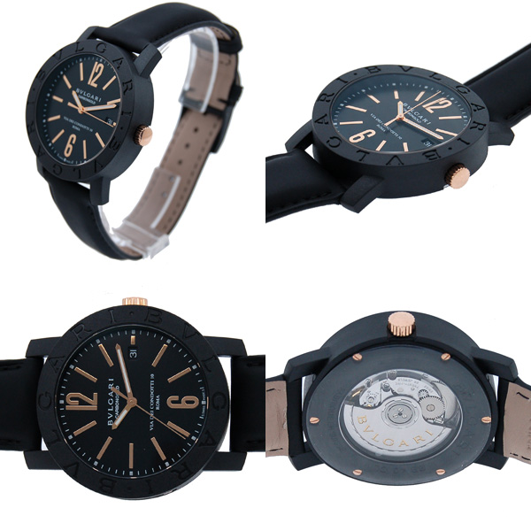 ブルガリ スーパーコピー時計 ブルガリブルガリ カーボンゴールド BBP40BCGLD メンズ 40mm ブラック 革ベルト 新品