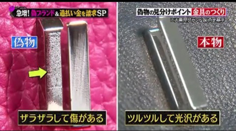 1番左の本物の金具は、角がどこも鋭利なところがない。