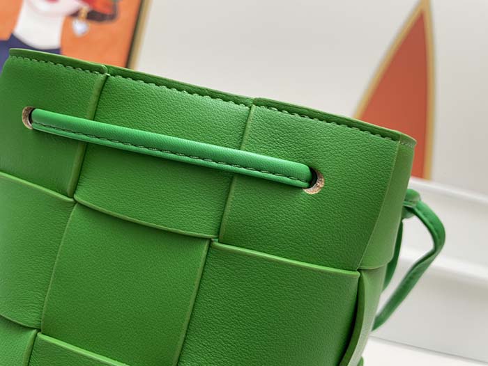 ボッテガ・ヴェネタ バッグ コピー スモール カセット クロスボディバケットバッグ パラキート 680218VCQC43722 ラムスキン ゴールド金具 BV2024114