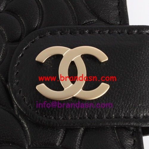 | 最安挑戦のシャネルスーパーコピー シャネル二つ折財布コピー CHANEL カメリア ラムスキン 二つ折財布 ブラック&ゴールド A50087 |