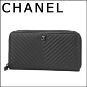 シャネル 長財布(ラウンドファスナー) CHANEL A50097 Y10849 94305 財布 マトラッセ MATELASSE ラムスキン シェヴロン キルティング ジップ ウォレット レディース BLACK ブラック 黒