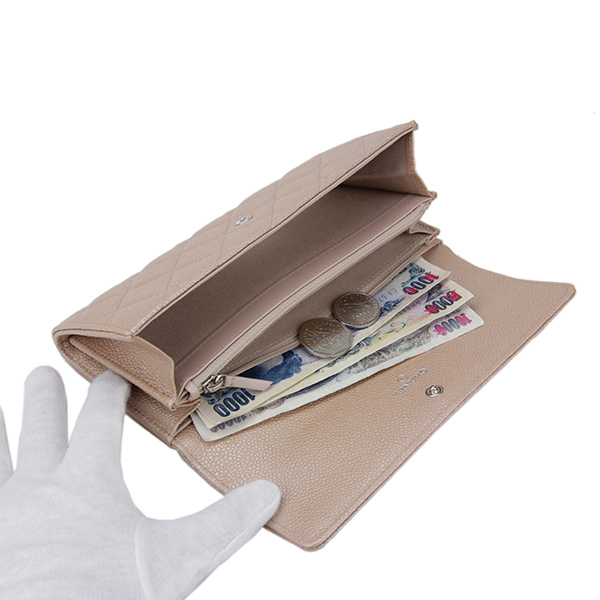 華やかなメタリックカラーとフロントのつや消しCCロゴが特徴の長財布です。内部のポケットも豊富なので長くご愛用いただけます。