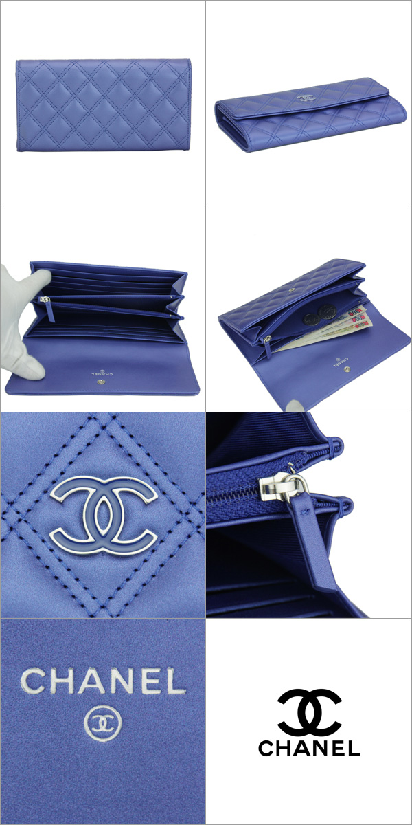 シャネル 長財布 CHANEL A82127 Y25269 0A728 財布 マトラッセ MATELASSE METALLIC CALFSKIN FLAP WALLET レディース BLUE ブルー 青