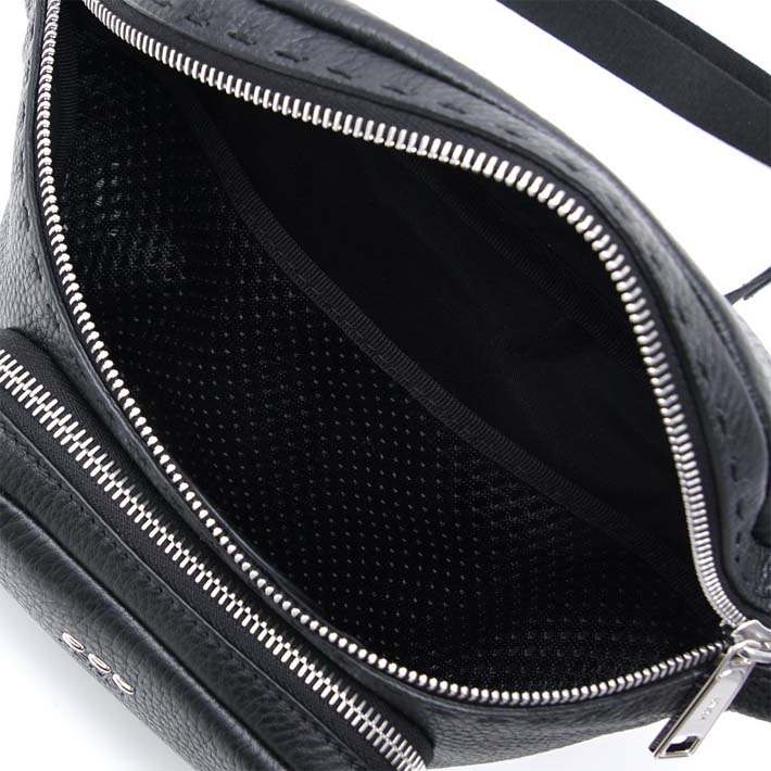 コンパクトで使い勝手抜群なスモールサイズのベルトバッグ。フロントのジップポケットとメッシュ素材をつかった内ポケットが細かい収納ニーズに応えてくれる頼もしさ。調節可能なベルト付き。手縫いの「メタルステッチ」でリッチなオーラを放っています。