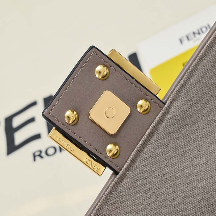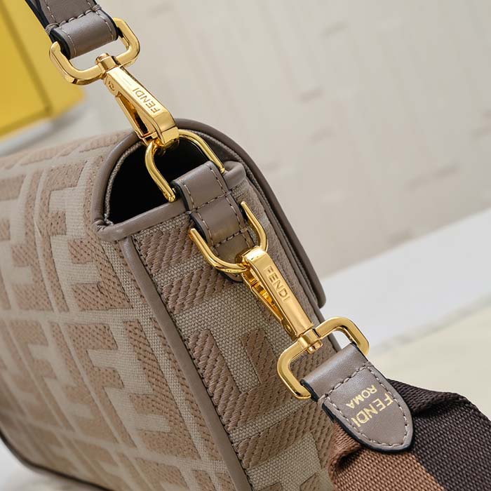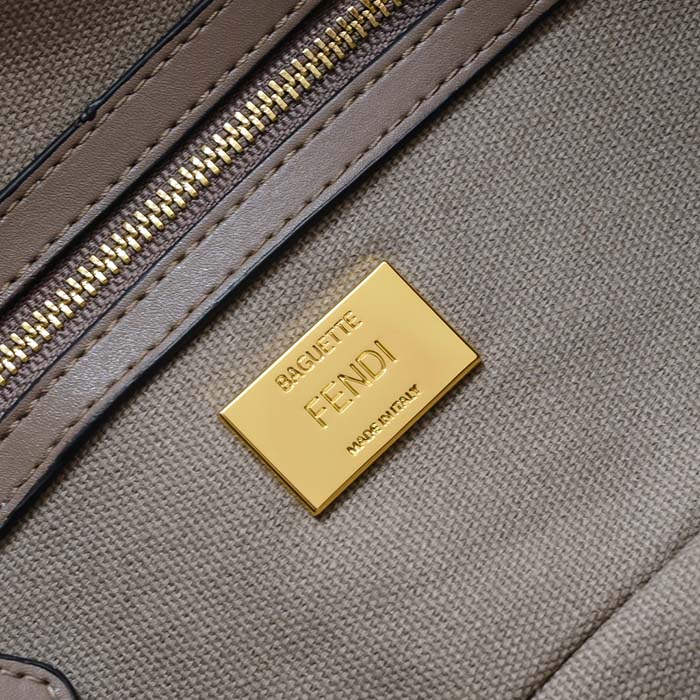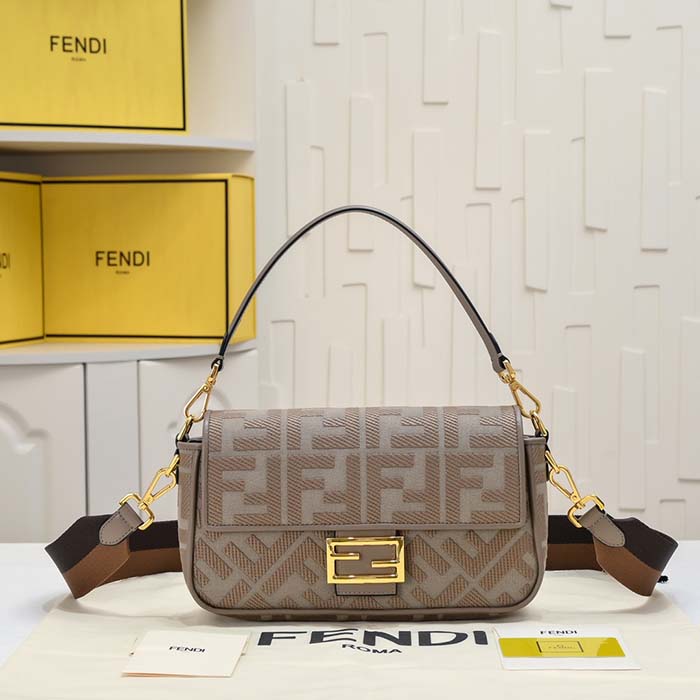 フェンディ バッグ コピー フェンディ バッグ アウトレット バゲット ブラックFFキャンバス バッグ グレー 8BR600AMCDF1CFJ レザー ゴールド金具 FENDI2024053