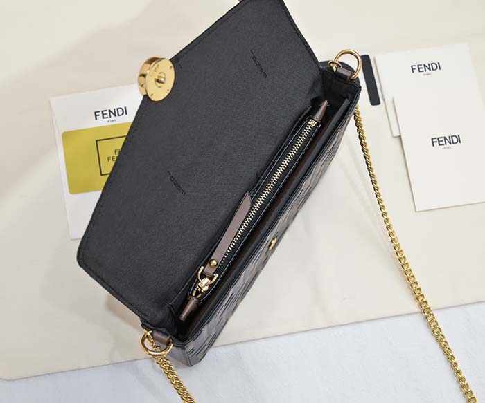 フェンディ バッグ コピー フェンディ バッグ アウトレット バッグ 2024年 新作 ブラック F005 レザー ゴールド金具 FENDI2024057