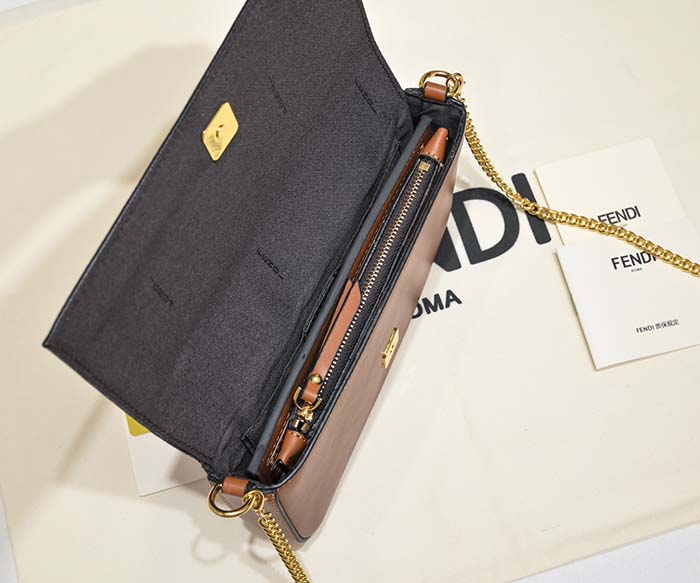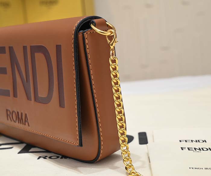 フェンディ バッグ コピー フェンディ バッグ アウトレット バッグ 2024年 新作 ブラウン F005 レザー ゴールド金具 FENDI2024059