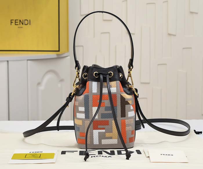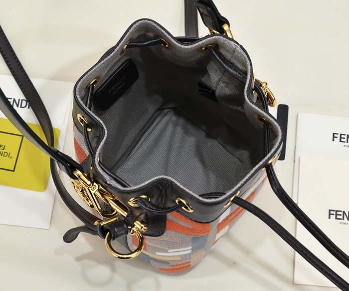 フェンディ バッグ コピー フェンディ バッグ アウトレット モン トレゾール ブラック&ホワイトキャンバス ミニバッグ FF刺繍 ブラック 8BS010ANY3F1LAF レザー ゴールド金具 FENDI2024071
