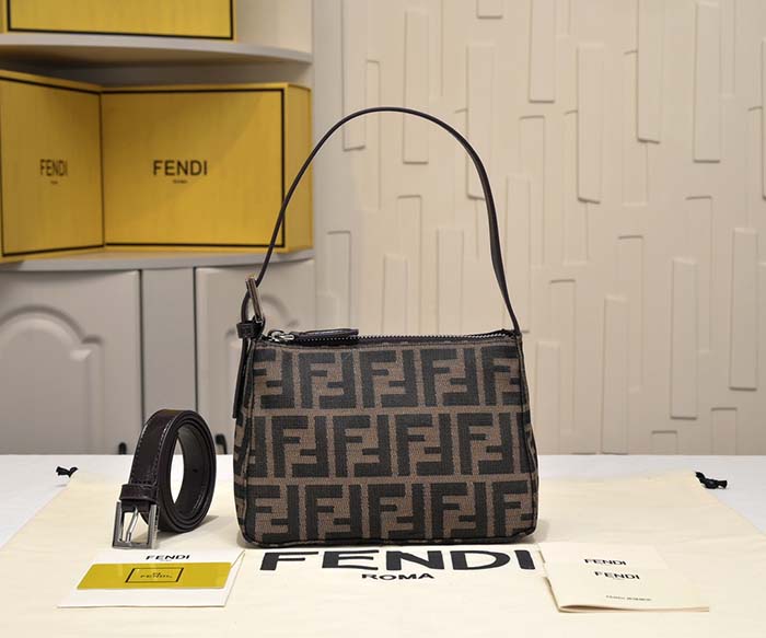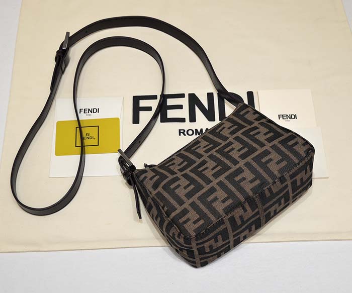 ブランド FENDI フェンディ 商品名 バゲット スリム クラッチ ブラウンFF ファブリックバッグ 品番 8BS073AR22F1NPK カラー マルチカラー 素材 レザー 金具 シルバー サイズ 19x8x14 付属品 保存箱、保存袋
