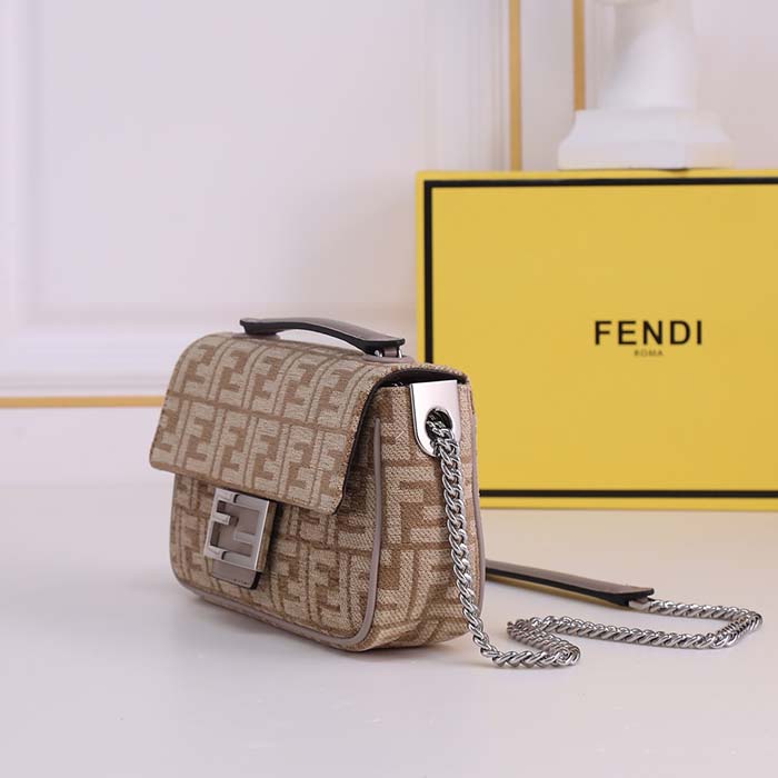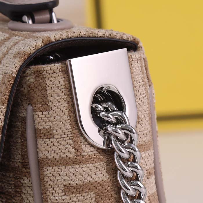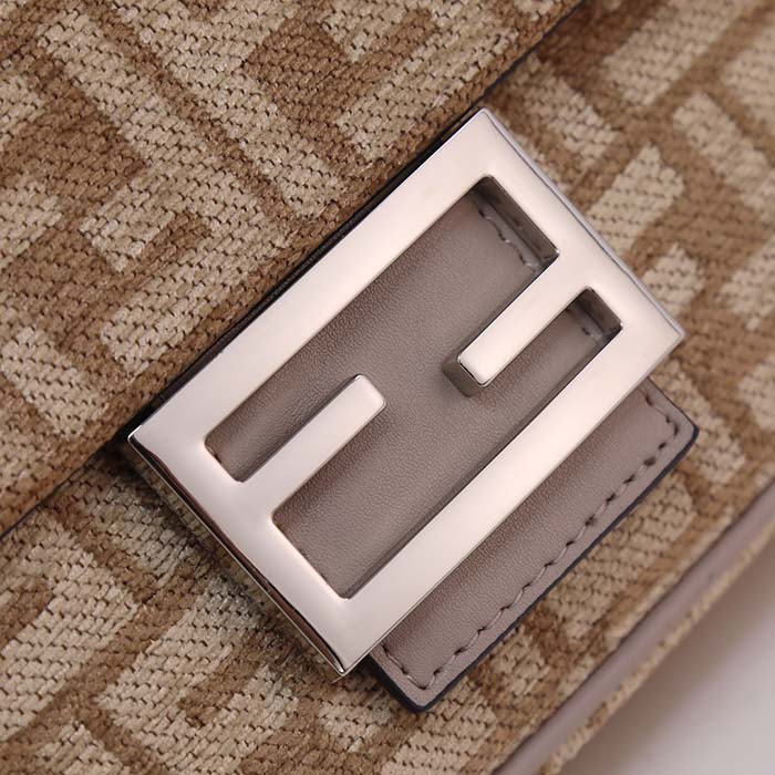 フェンディ バッグ コピー フェンディ バッグ アウトレット バゲット チェーン ミディ ダブグレー タペストリーファブリック バッグ FFモチーフ 8BR793AQF4F1LEY レザー シルバー金具 FENDI2024145