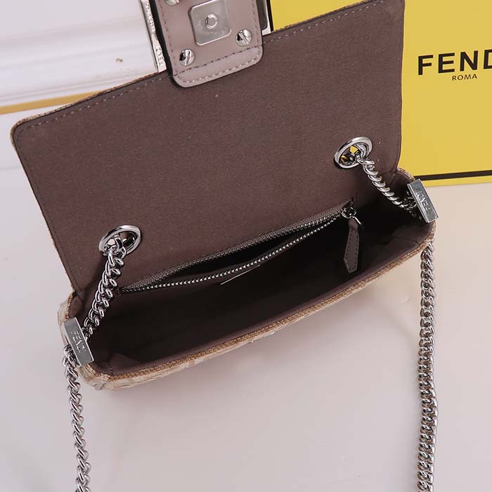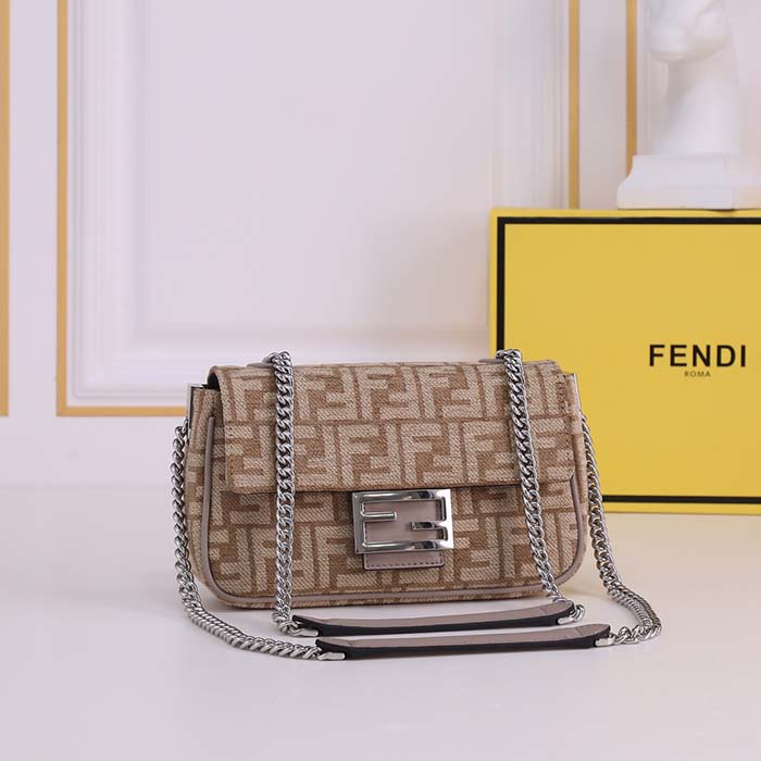ブランド FENDI フェンディ 商品名 バゲット チェーン ミディ ダブグレー タペストリーファブリック バッグ FFモチーフ 品番 8BR793AQF4F1LEY カラー マルチカラー 素材 レザー 金具 シルバー サイズ 24×14.5×7CM 付属品 保存箱、保存袋