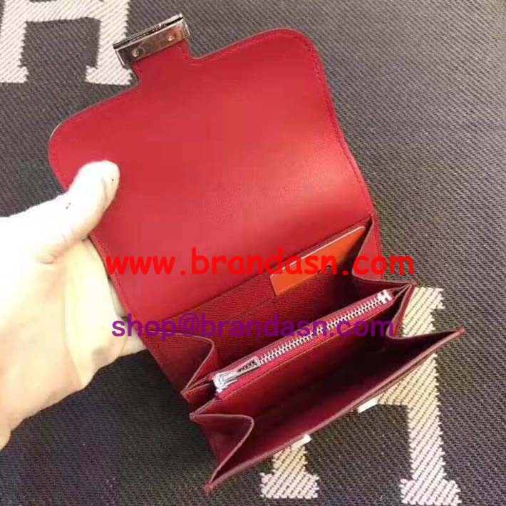 HERMES エルメス コンスタンス 財布 コンパクト ヴォーエプソン ルージュクー シルバー金具