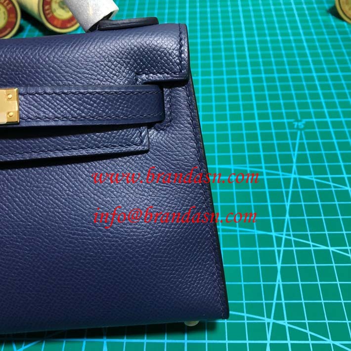 安くて高品質 エルメス ケリーミニ2 ヴォーエプソン ブルーサフィール ゴールド金具