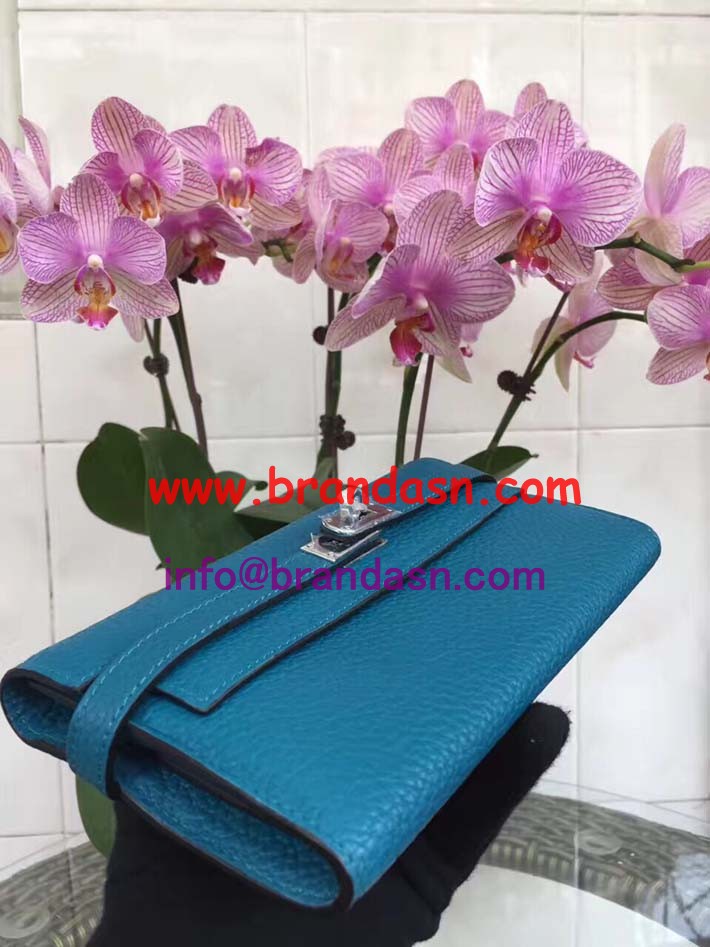 エルメス ケリーウォレットロング ブルーイズミール トリヨンクレマンス シルバー金具