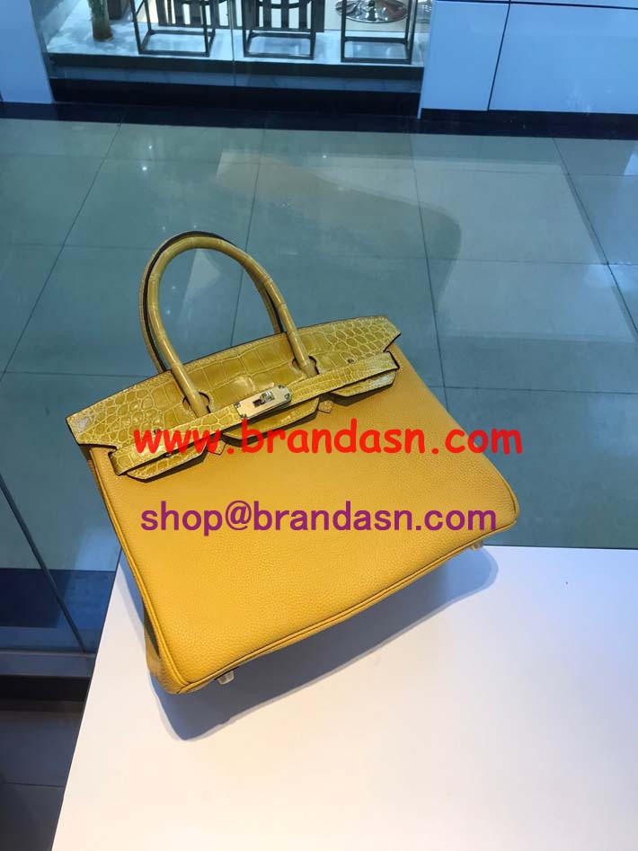 エルメス バーキンタッチ30 ジョーヌナプル トゴ/クロコダイル ニロティカス ゴールド金具