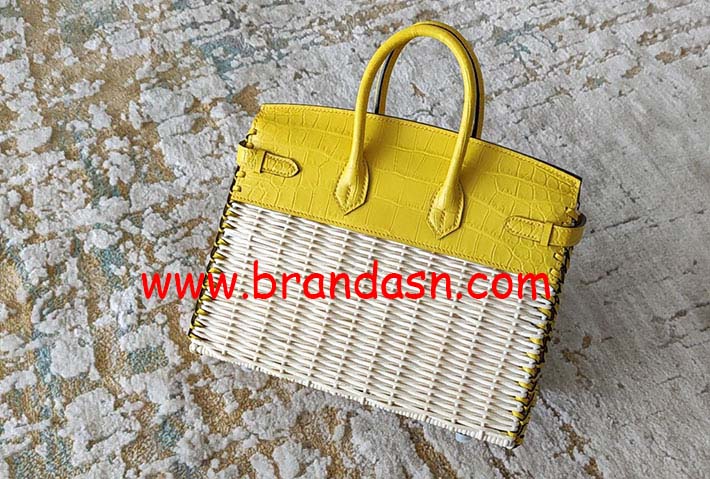 人気のHERMESスーパーコピー HERMES バーキンピクニック25 ナチュラル×ミモザ 柳×クロコダイルニロティカス シルバー金具【新品】