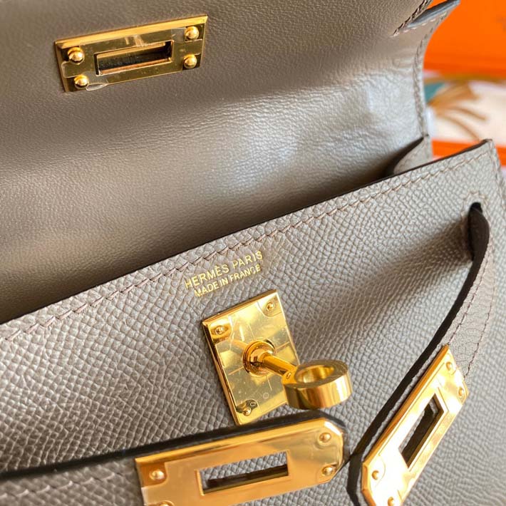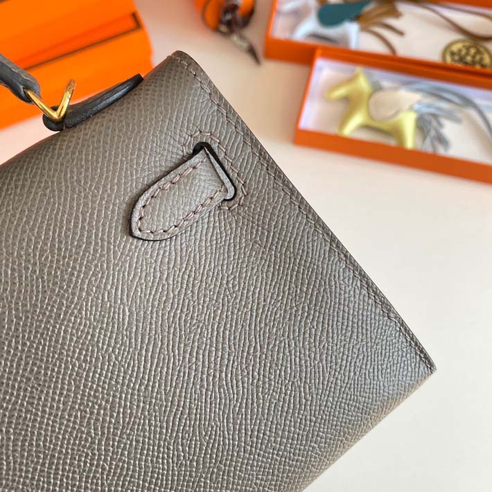 安全な通販サイトのエルメスコピー HERMESケリーミニコピー エルメス ケリーミニ 2/ミニケリー 2 エタン ヴォーエプソン ゴールド金具 外縫い