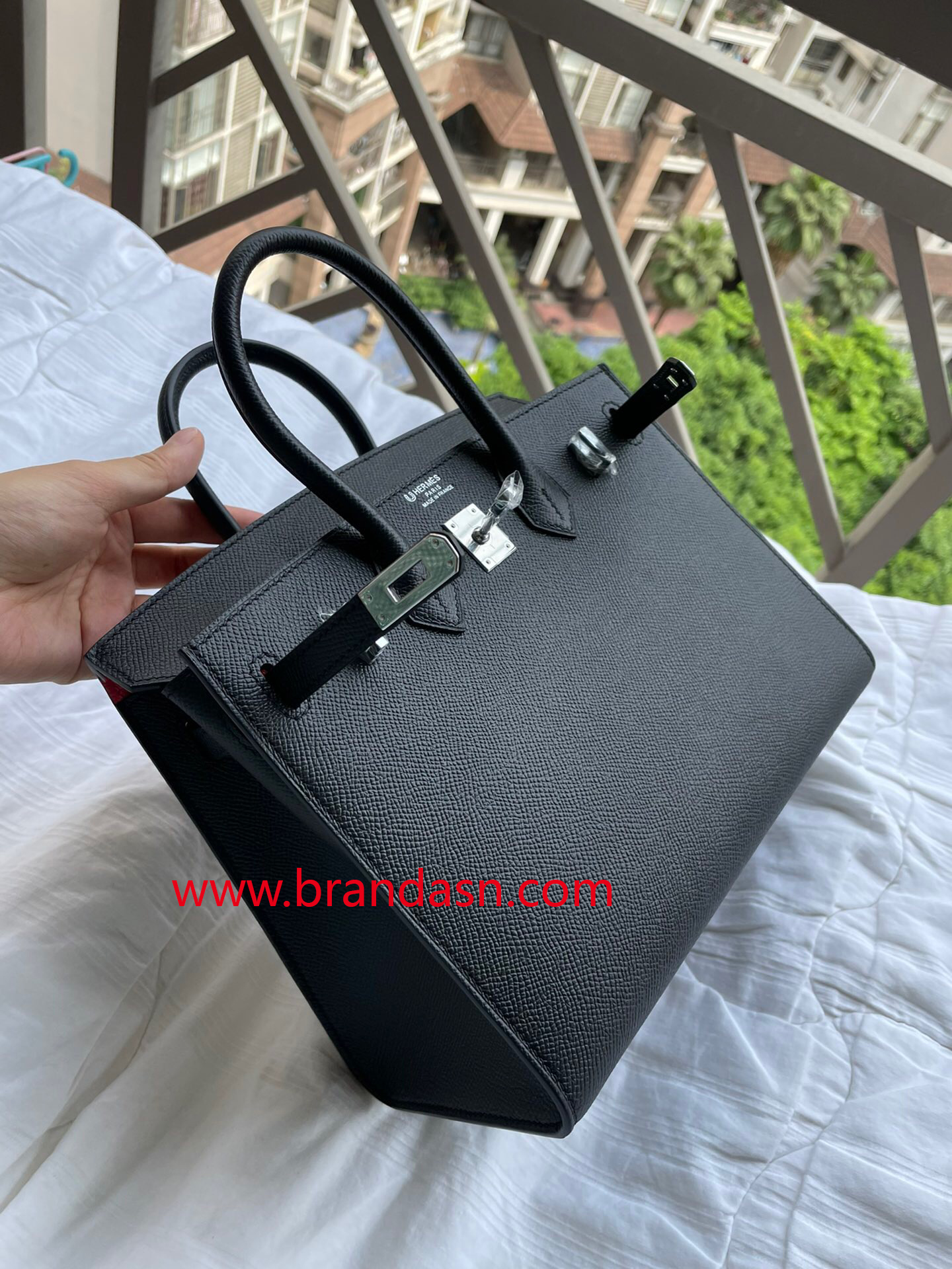安全な通販サイトのエルメスコピー HERMES バーキン25cm 外縫 エプソン ブラック/ルージュカザック シルバー金具【2024新作】