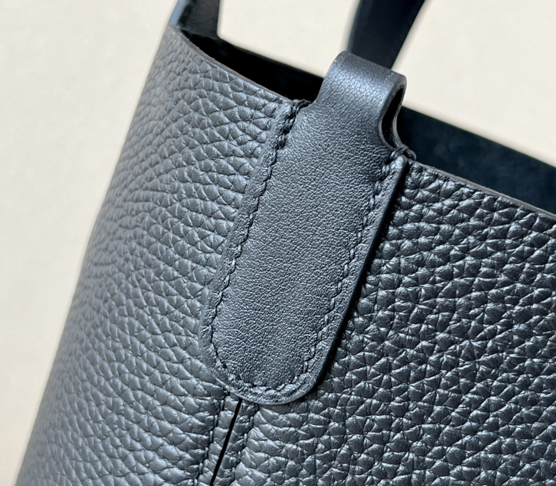 商品詳細 商品名 ピコタンロック サイズ 18 x*12.5x*22cm 色 ブラック 素材 トリヨンクレマンス 金具 シルバー 刻印 K刻(2025年製造) 付属品 カデナ、鍵、保存袋、箱、リボン