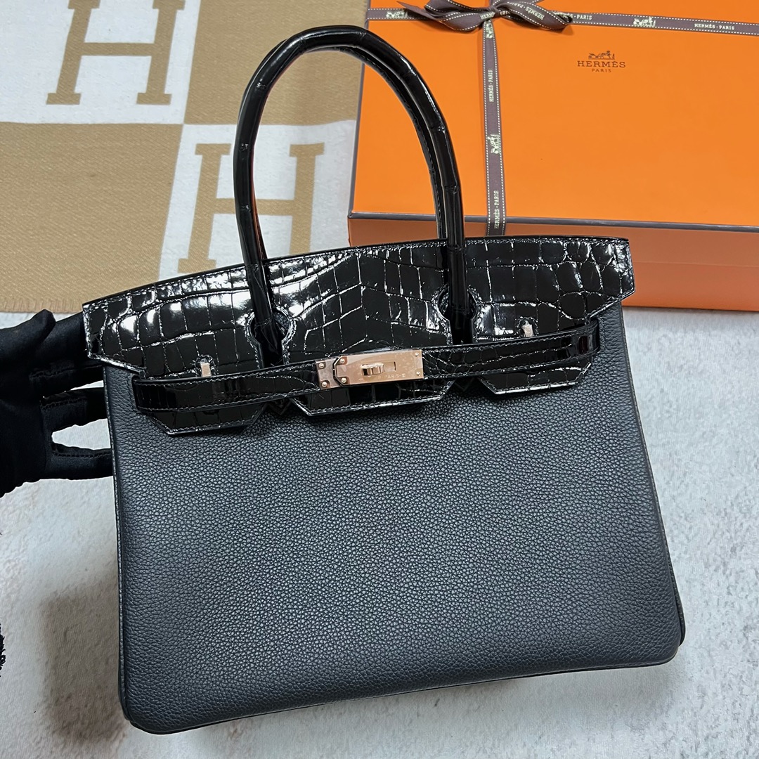 2024年最新作 人気 エルメス バーキン タッチ 30cm 黒(ブラック) トゴ/クロコダイル アリゲーターマット ローズゴールド金具