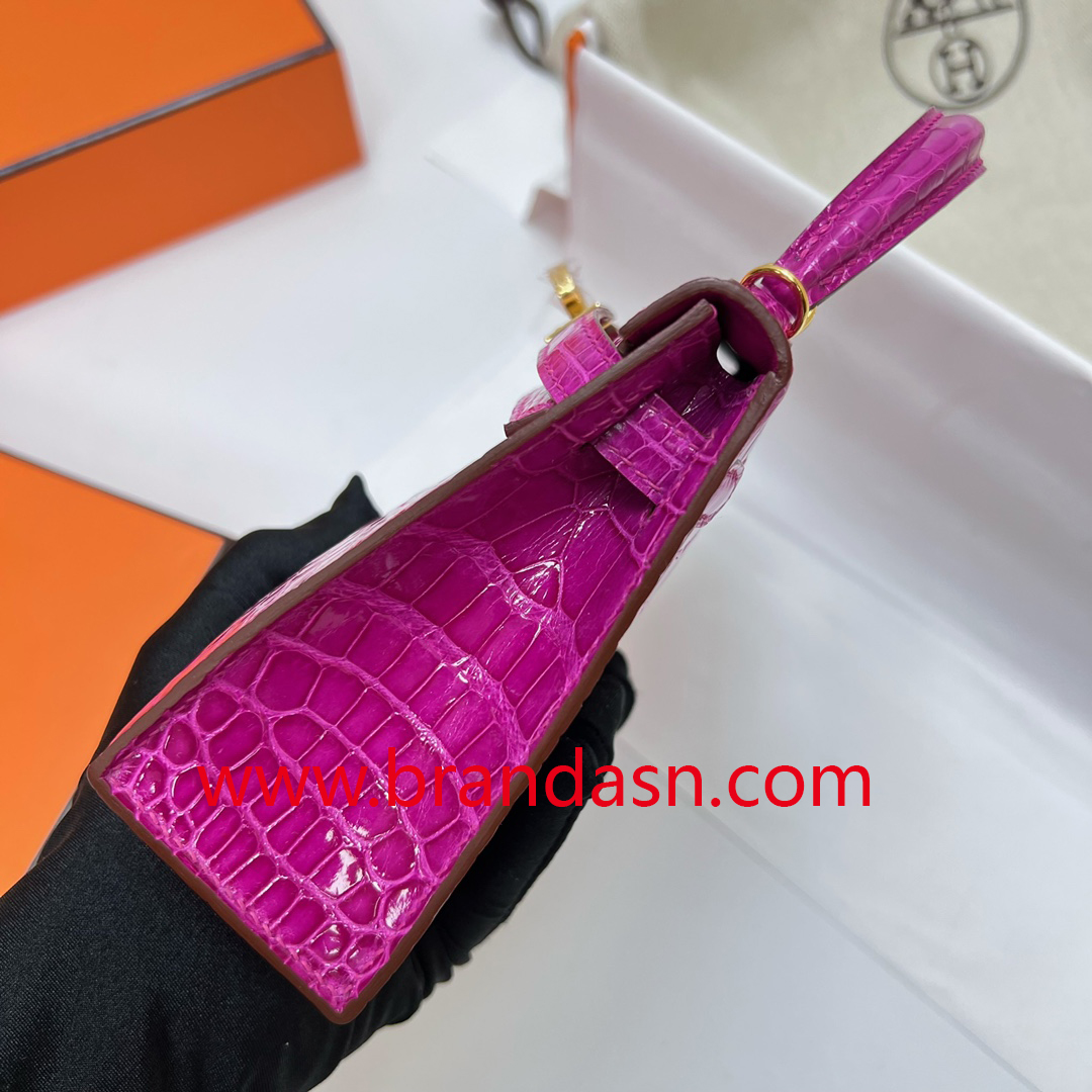 2024年最新作 人気 エルメス ケリーミニ2 ローズシェヘラザード クロコダイル アリゲーターマット ゴールド金具