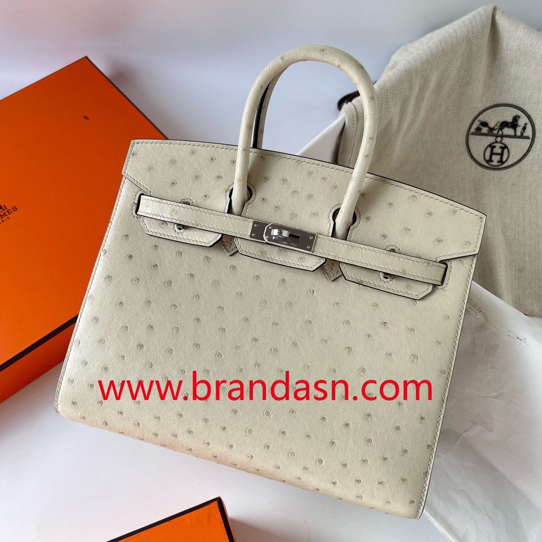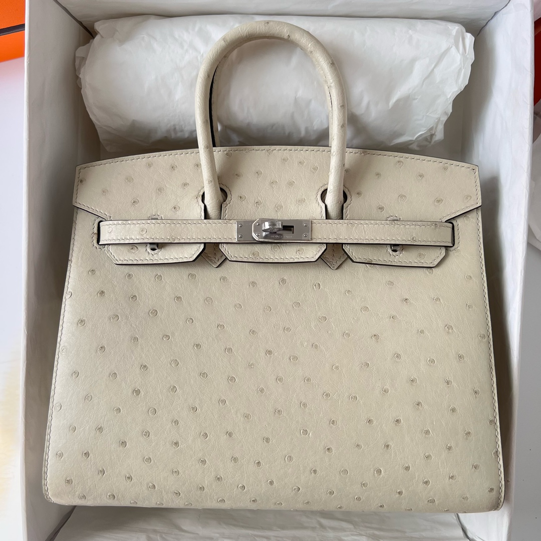 ウォレットバッグ HERMES バーキン 25cm セリエ パーシュマン Parchemin(3C) オーストリッチ シルバー金具 hermes-OFF08-224