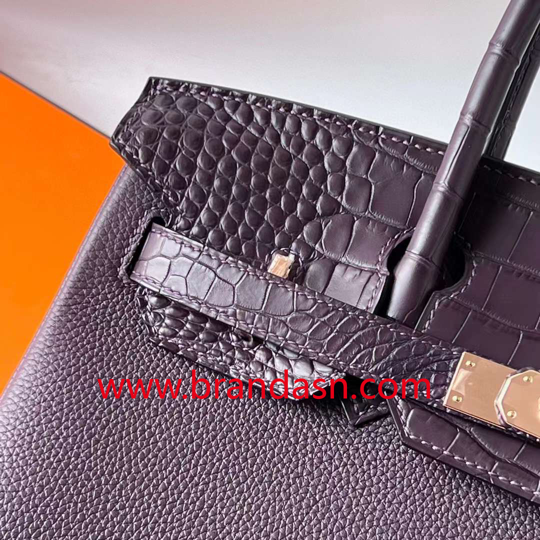 ウォレットバッグ HERMES バーキンタッチ30 レザン Raisin(59) トゴ/クロコダイル アリゲーターマット ゴールド金具 hermes-OFF08-677