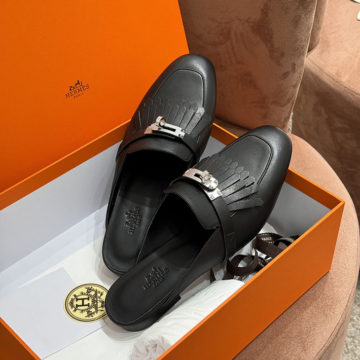 エルメスコピー最安値で通販のエルメス ミュール 《オズ》 黒 H241068Zv02350 レザー シルバー金具【新品】