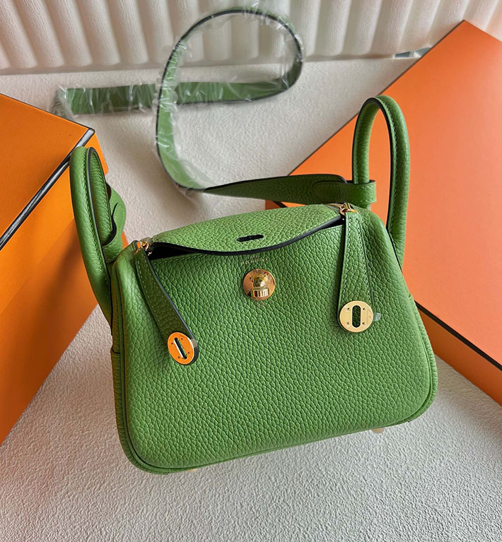 HERMES Mini Lindy VERT CRIQUET(3I) Clemence Gold Buckle 【NEW】