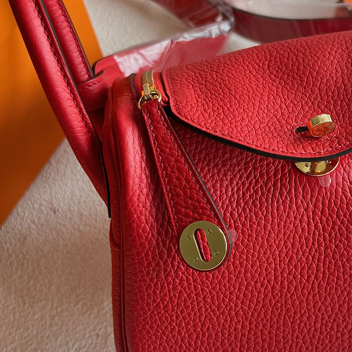 HERMES Mini Lindy ROUGE DE COEUR(S3) Clemence Gold Buckle 【NEW】
