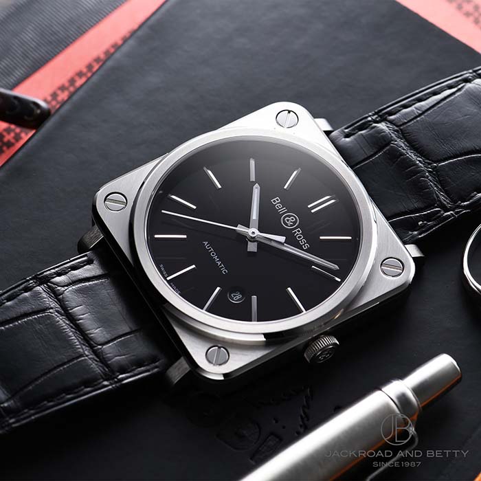 航空機の計器をモチーフに誕生したベル&ロスの BRコレクション。 スクエア型の特徴的なデザインが人気のモデルです。 4時位置付近にデイト表示。機械式自動巻きムーブメント搭載。 メーカーオリジナルボックス、国際保証書付属。