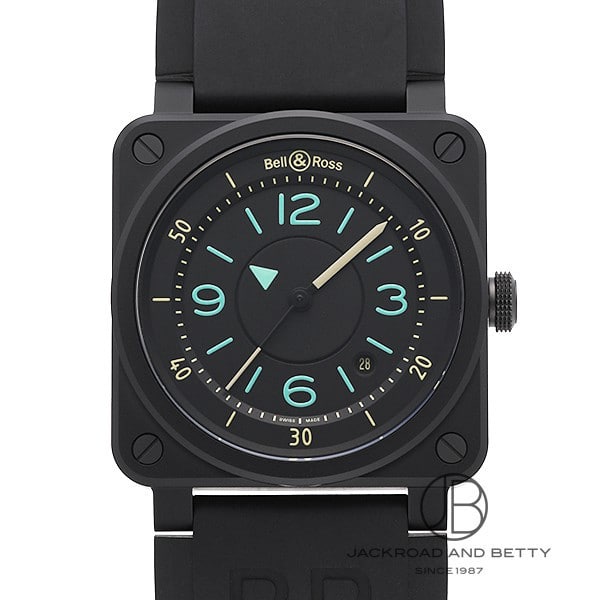 BELL&ROSS ベル&ロス BR03-92 Bi-Compass Limited Edition BR03-92 バイコンパス リミテッド BR0392-IDC-CE/SRB ブラック 2019年新作 世界999本限定 マットブラックセラミックケース 無反射コーティングサファイアガラス 圧倒的な明るさと暗闇の中での高い持続性が特徴のスーパールミノヴァ夜光 交換用ベルクロ式ストラップ、工具付属 【ベル&ロス Instruments BR03の魅力】 航空計器からインスピレーションを受けた大胆なスクエアケースのデザインを得意とするベル&ロス。「デザインは機能に従う」の信念を掲げ、その道のプロフェッショナルと共にプロユースを想定した時計の製造に取り組んできました。 実用性もさることながら、洗練されたフレンチスタイルでファッション業界からも高い評価を獲得。1992年創業とまだ若いブランドながら、高級腕時計業界に新風を吹き込んでいます。 コックピットの航空計器を基にデザインされたInstruments BR03。「視認性」「機能性」「高精度」「信頼性」と4つの基本原則を忠実に倣った同社を代表するコレクションです。GMTやパワーリザーブを備えた多機能モデルや流行を押さえた限定モデルも多数展開されており、ブランドの基幹コレクションとして充実のラインアップを誇ります。 スペック 状態:新品 サイズ:メンズ ケース径:42 × 42 mm ムーブメント:自動巻き 防水性能:100m防水 風防:サファイアクリスタル風防 仕様:日付表示 付属品:メーカー純正BOXあり ケース素材:セラミック ベゼル素材:セラミック ベルト素材:ラバー ベルトタイプ:ストラップ 文字盤カラー:ブラック