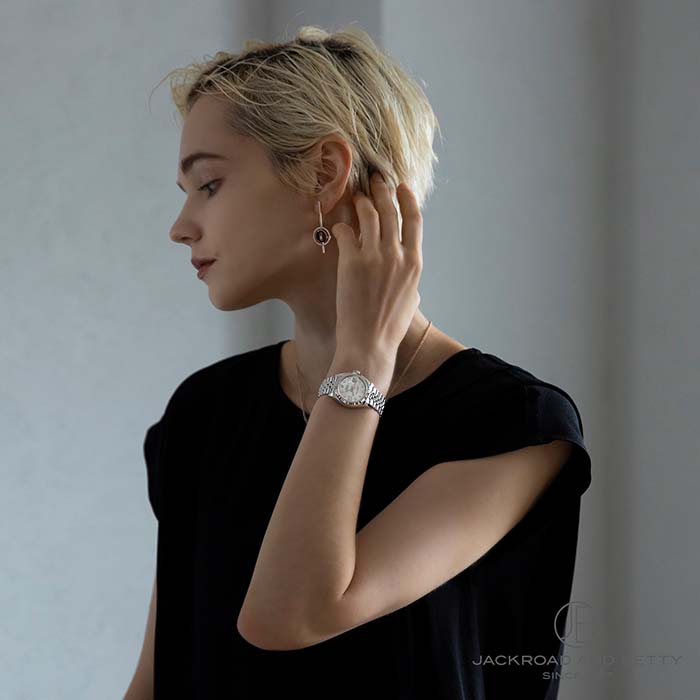 シャープにきらめくフルーテッドベゼルと5連のジュビリーブレスレットの組み合わせも、一目でロレックスと感じさせる王道の組み合わせ。清楚な雰囲気の中に大人のクラス感をプラスしてくれる、大変おすすめのモデルです。