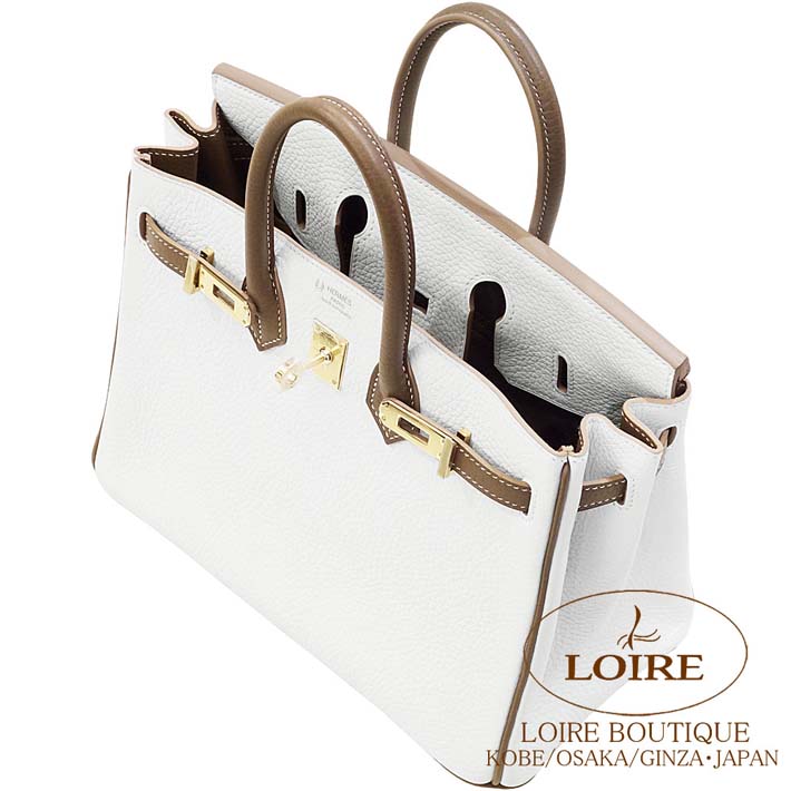エルメス HERMES バーキン 25cm [Birkin 25cm] パーソナルオーダー クレマンス シロ×エトゥープ [BLANC(01)/ETOUPE(18)] シャンパンゴールド金具