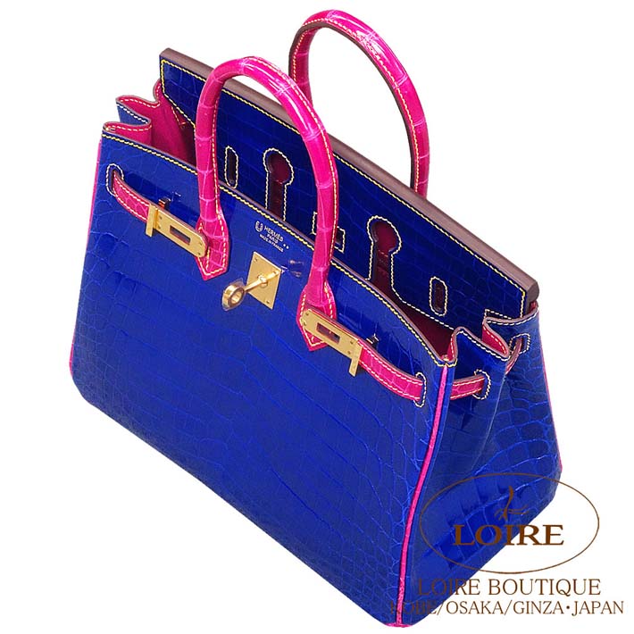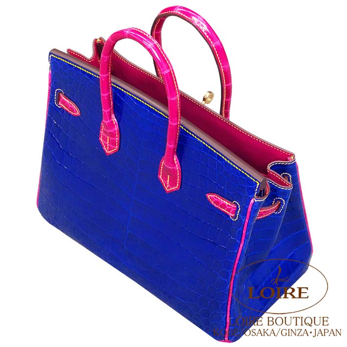 エルメス HERMES バーキン 25cm [Birkin 25cm] パーソナルオーダー ニロティカス ブルーエレクトリックxローズシェヘラザード [BLEU ELECTRIQUE(7T)/ROSE SHEHERAZADE(J5)] (ジョーヌステッチ) ゴールド金具