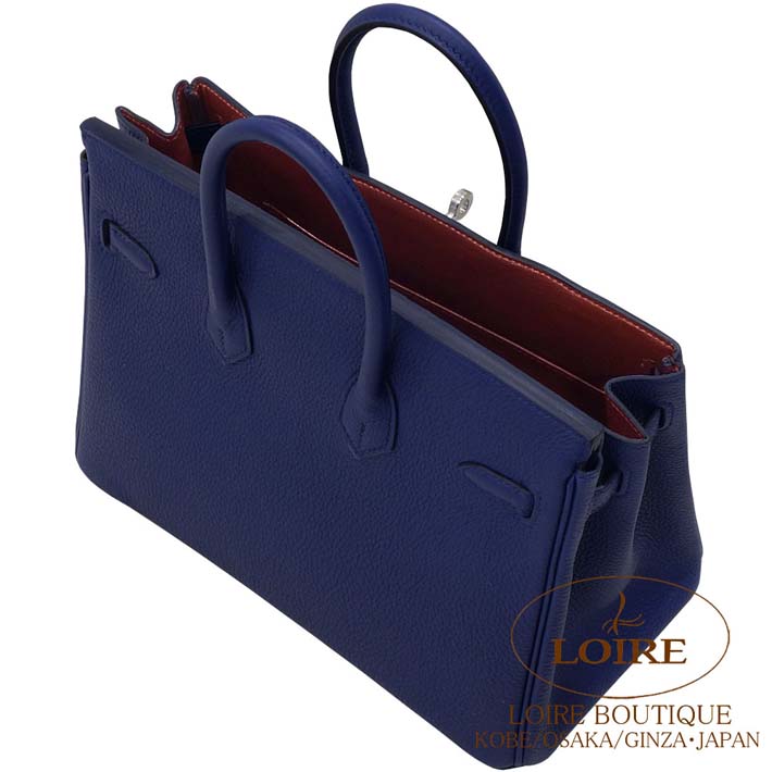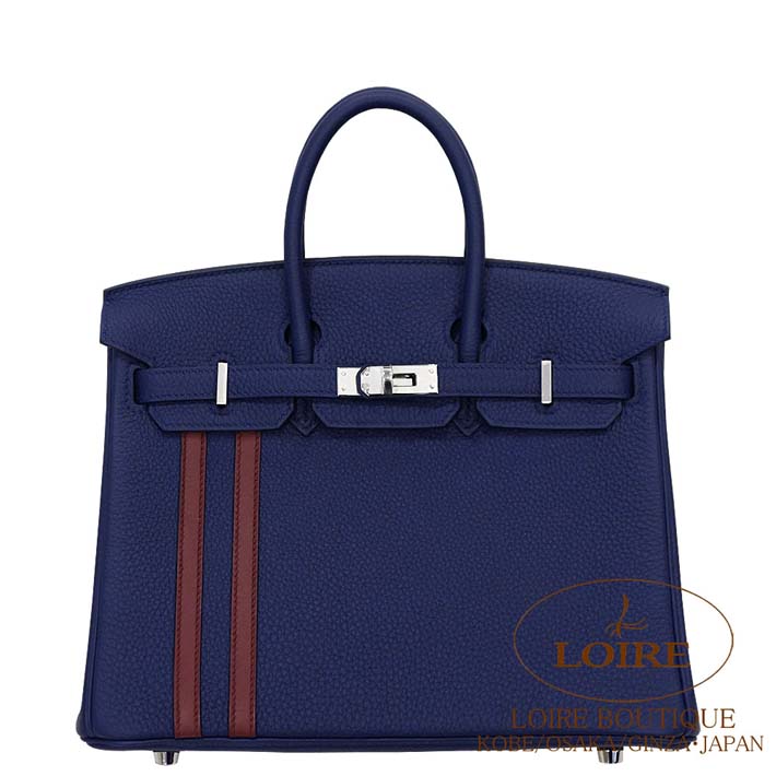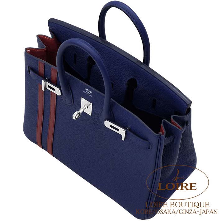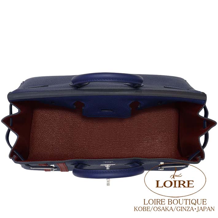 エルメス HERMES バーキン オフィシエ 25cm [Birkin Officier 25cm] トゴ×スイフト ブルーアンクル×ボルドー [BLEU ENCRE(M3)/BORDEAUX(57)]【2018年秋冬新色】 シルバー金具