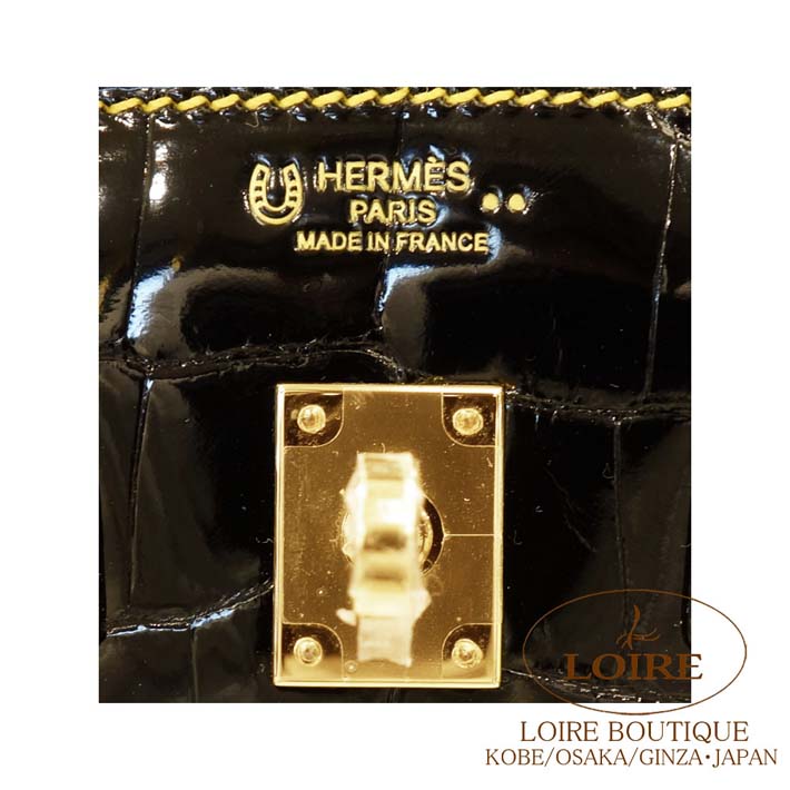 こちらの逸品!!誰もが羨むカラーの組み合わせと言っても過言ではありません。近年品薄のクロコダイル素材と言うだけでもレア商品の上、今回のお品はパーソナルオーダーと贅沢すぎる程の仕上がりとなっております。何とも言えないこの重厚感。シックなクロと鮮やかなミモザステッチとなっております。