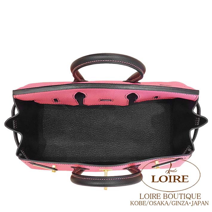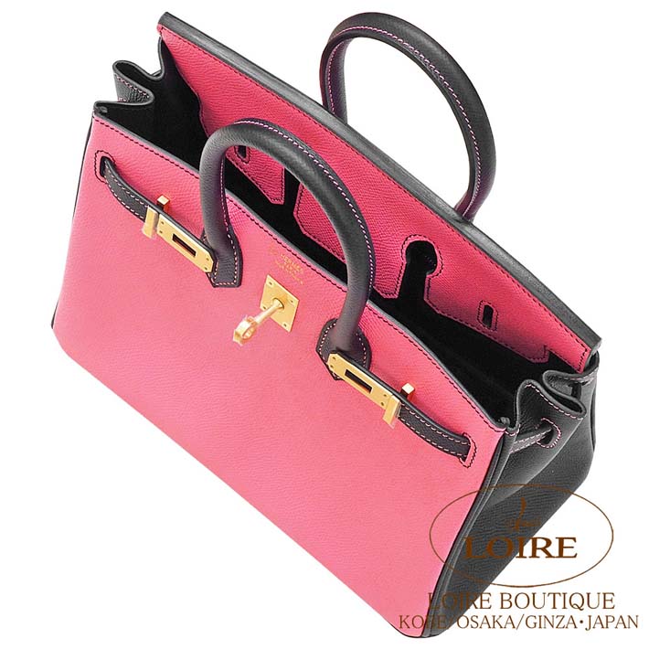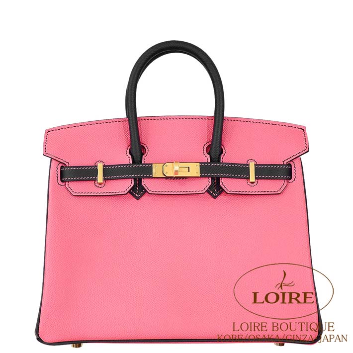 エルメス HERMES バーキン 25cm [Birkin 25cm] パーソナルオーダー エプソン ローズアザレ×クロ(クロ×ローズアザレステッチ) [ROSE AZALLE(8W)/NOIR(89)] マットゴールド金具