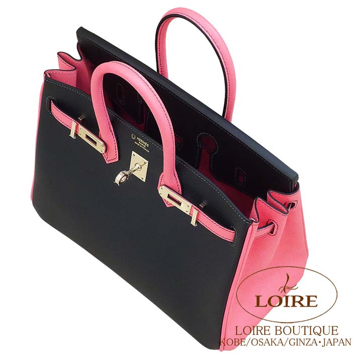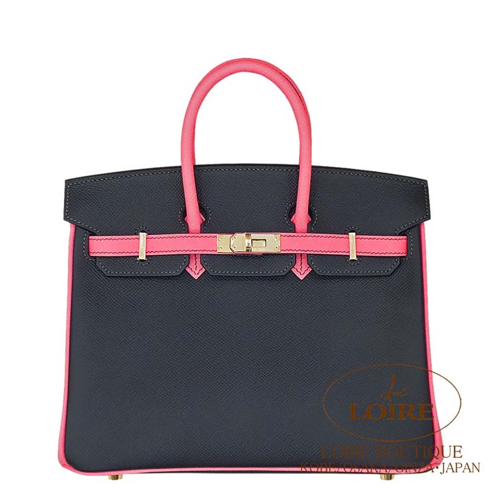 エルメス HERMES バーキン 25cm [Birkin 25cm] パーソナルオーダー エプソン クロ×ローズアザレ[NOIR(89)/ROSE AZALLE(8W)] (グラファイトステッチ) シャンパンゴールド金具