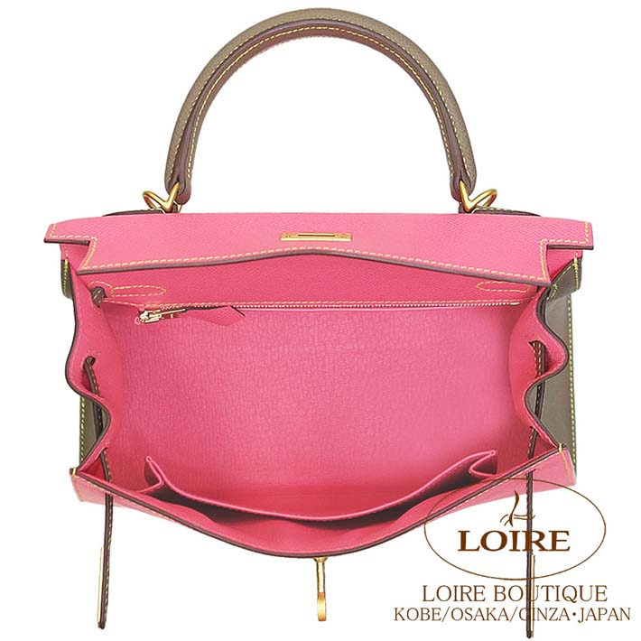 HERMES Kelly 25cm Sellier Personal Order Epson ROSE AZALEE(8W)/ETOUPE(18) Matte Gold hard