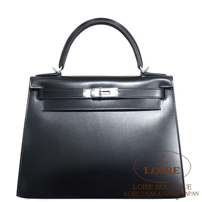 エルメス ケリー 28cm 外縫 ボックスカーフ クロ シルバー金具