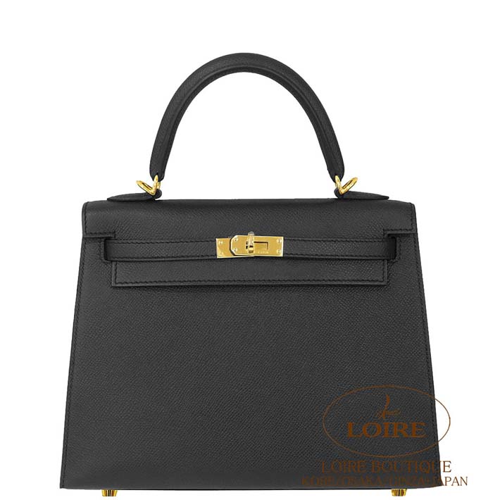 HERMES Kelly 25cm Sellier Epson NOIR(89) Gold hardware