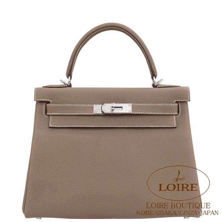 HERMES Kelly 28cm Retourne Togo ETOUPE(18) Silver hardware
