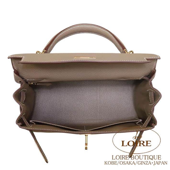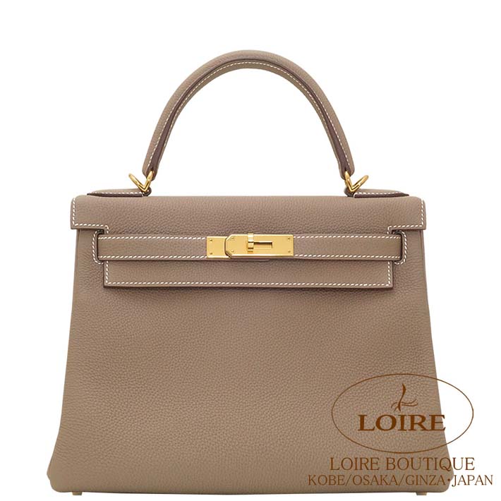 HERMES Kelly 28cm Retourne Togo ETOUPE(18) Gold hardware