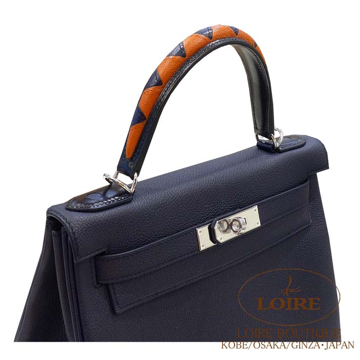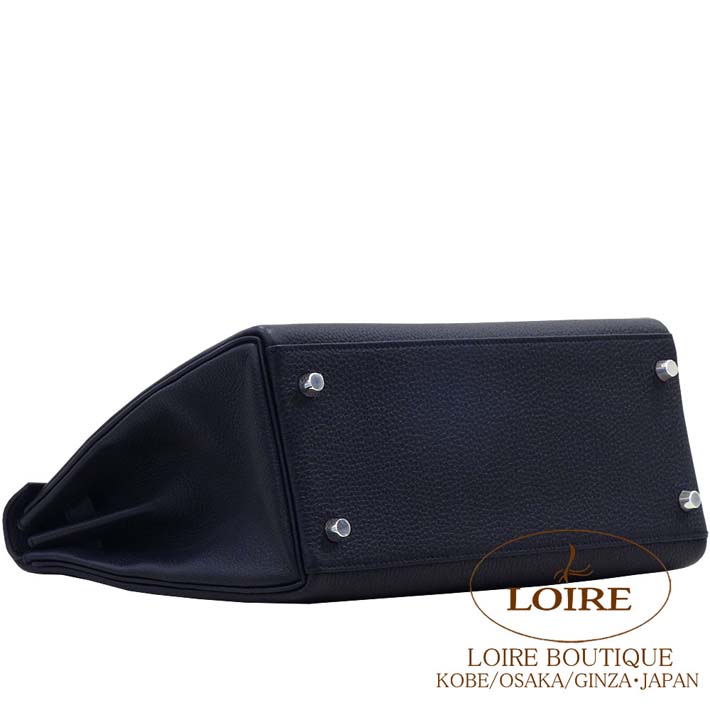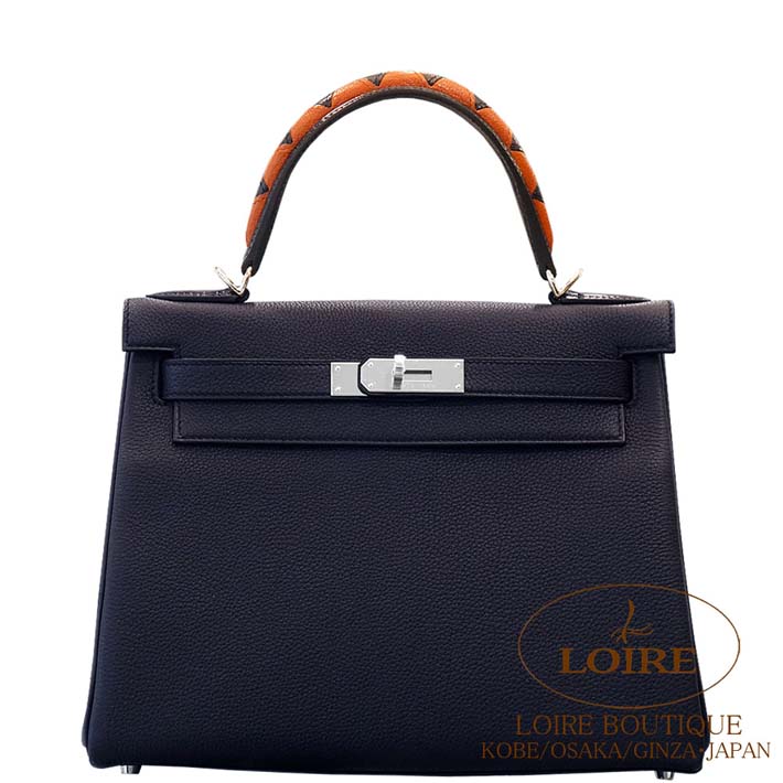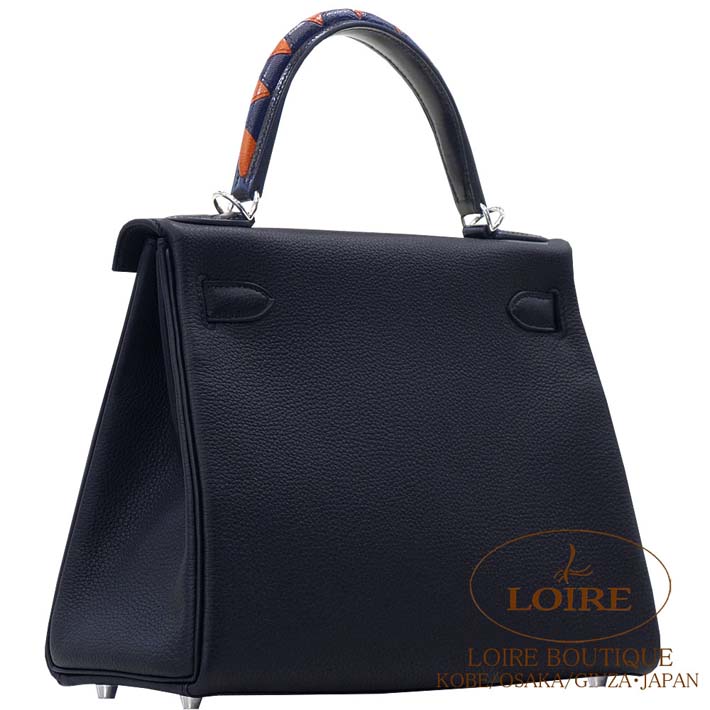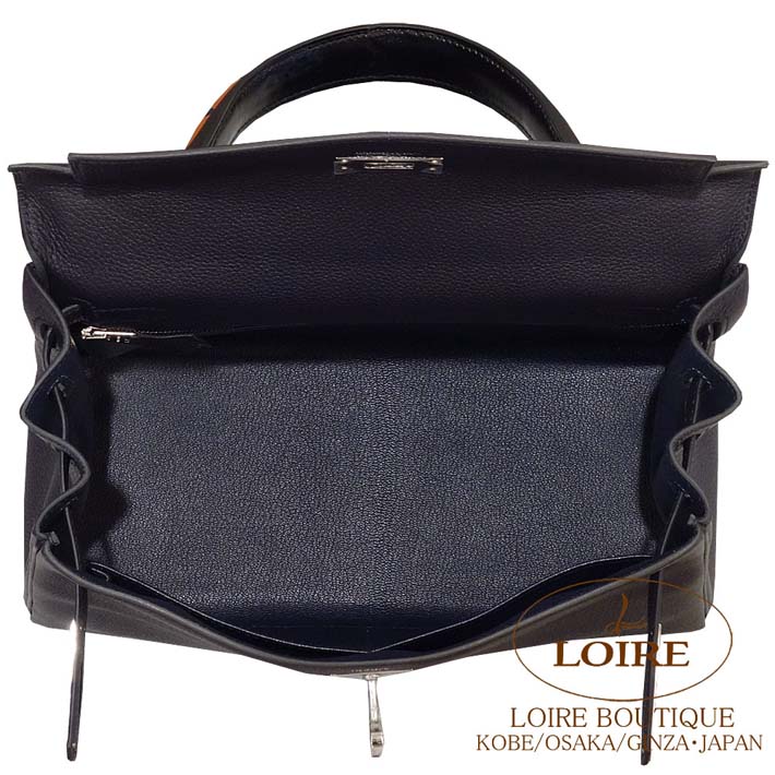 HERMES Kelly 28cm Galop Retourne Togo/Box Calf/Chevre BLEU INDIGO(76)/NOIR(89)/CUIVRE(6C) Silver hardware