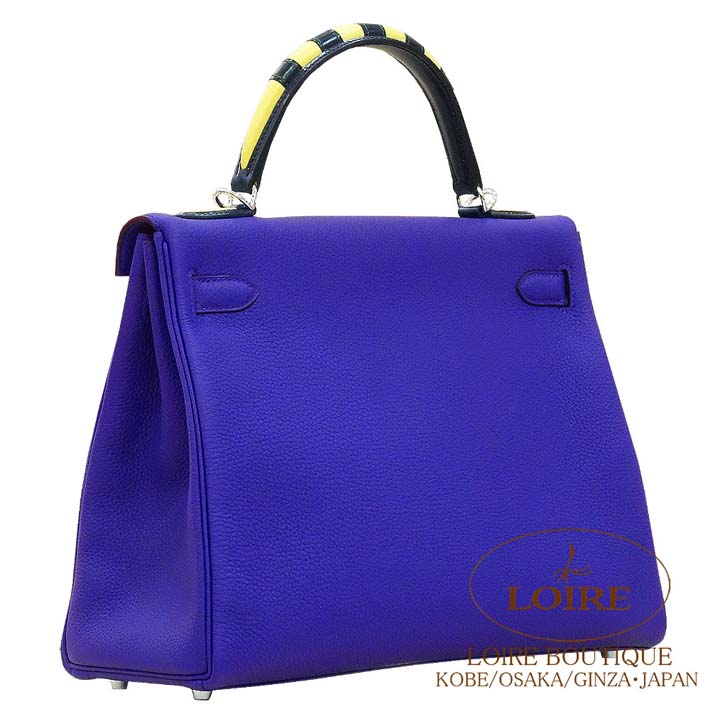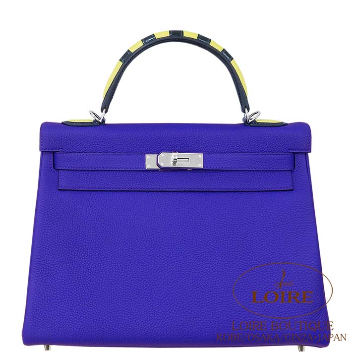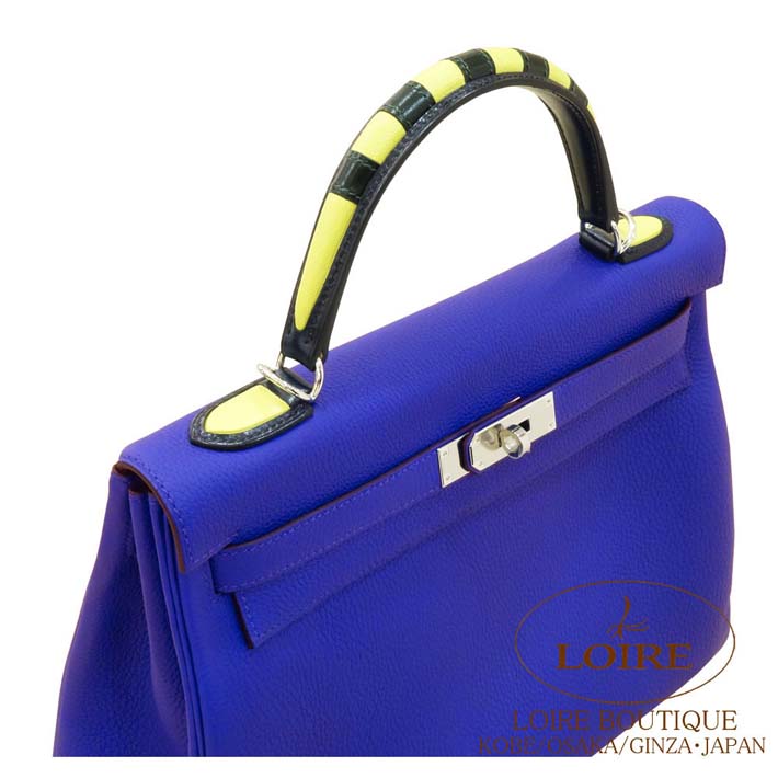 HERMES Kelly 32cm Autrot Retourne Togo/Box Calf/Chevre BLEU ELECTRIQUE(7T)/BLEU INDIGO(76)/LIME(9R)/VERT FONCE Silver hardware