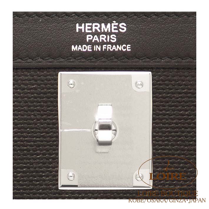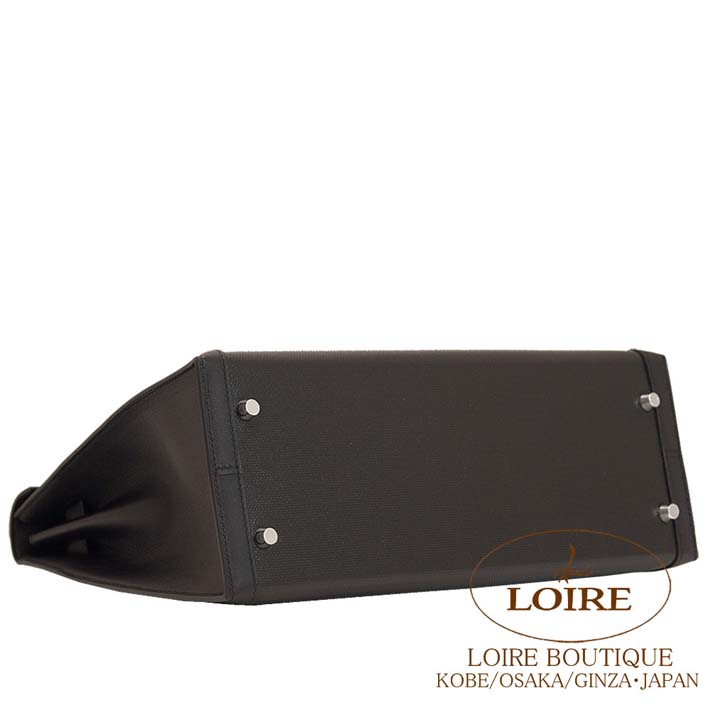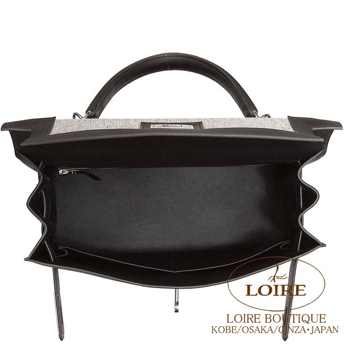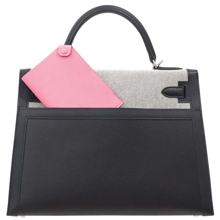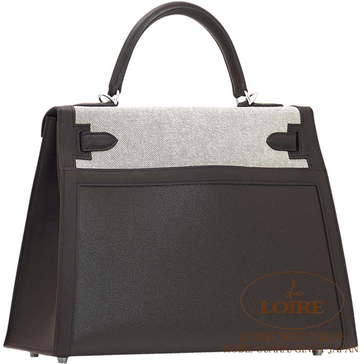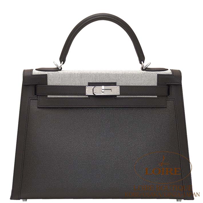 HERMES Kelly 32cm Sellier Toile H Berlin/Swift NOIR(89)/ECRU() Silver hardware