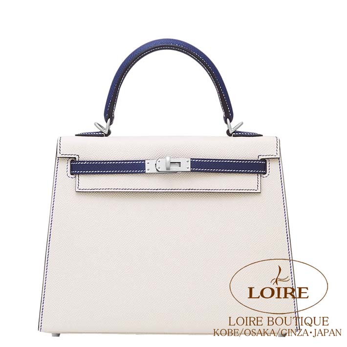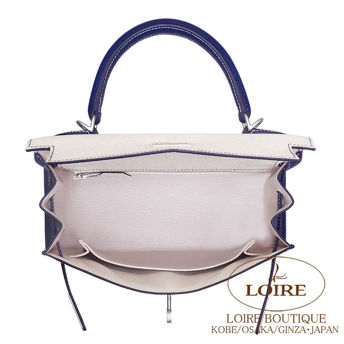 HERMES Kelly 25cm Sellier Personal Order Epson CRAIE(10)/BLEU SAPHIR(73) Matte Silver hardware