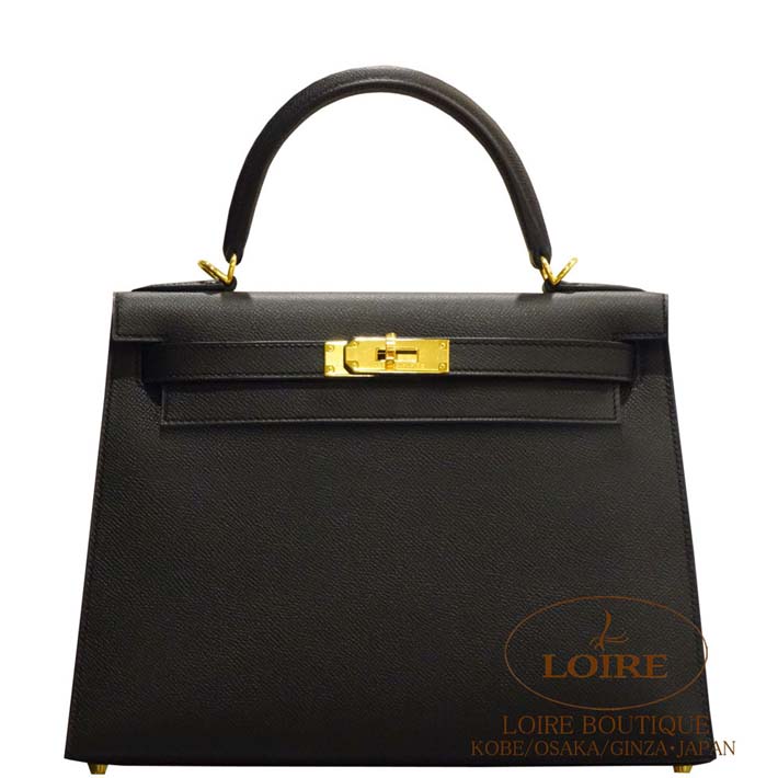 HERMES Kelly 28cm Sellier Epson NOIR(89) Gold hardware