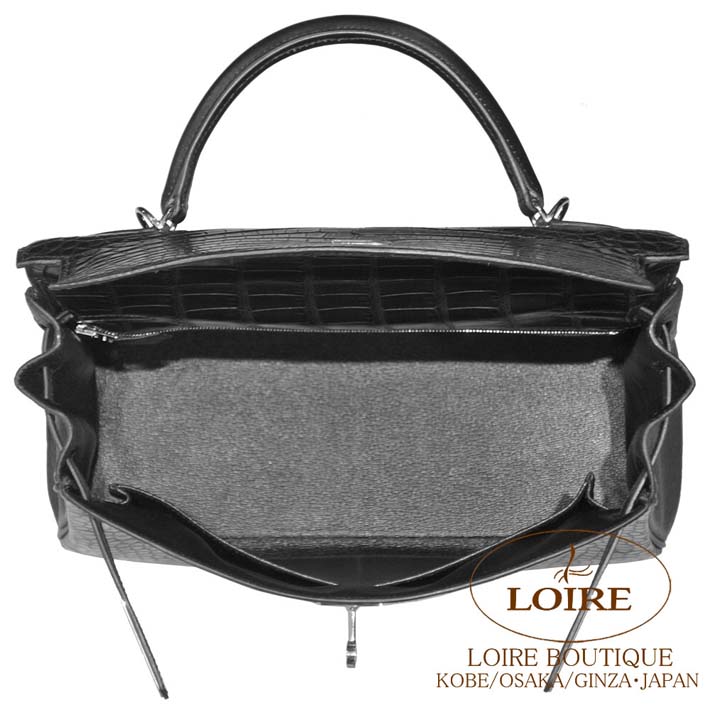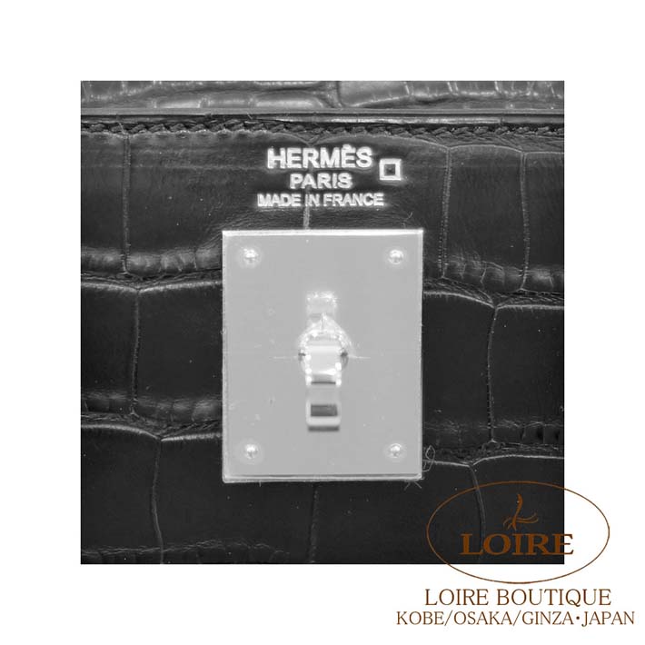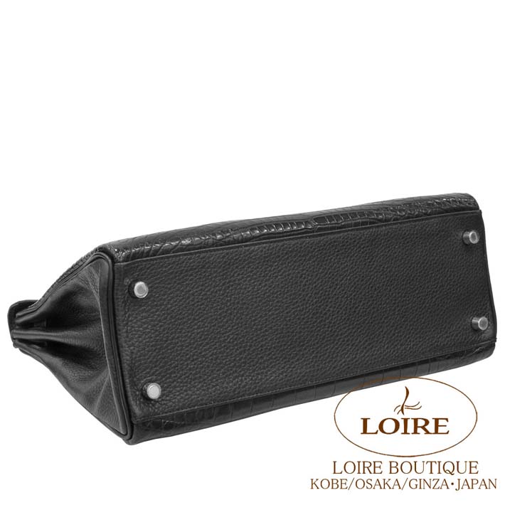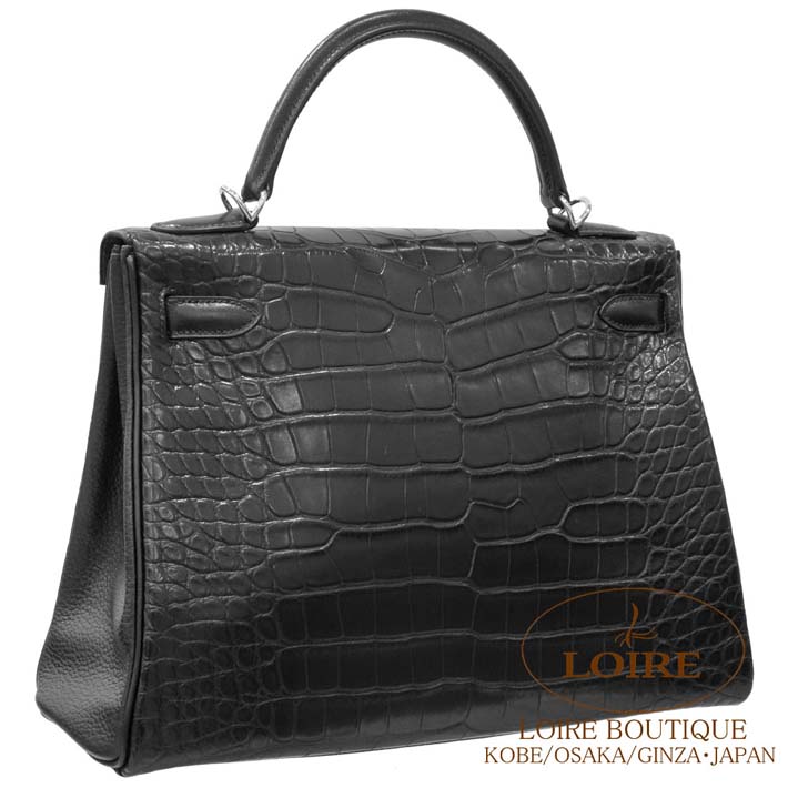 HERMES Kelly 32cm Retourne Alligator Matte/Clemence/Box Calf NOIR(89) Silver hardware